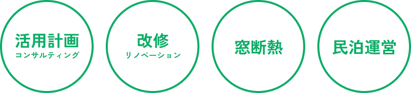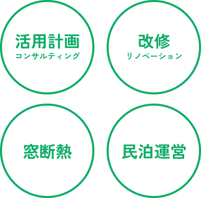 活用計画と行政連携、建築・金融の相談支援、住宅価値を向上させる改修。